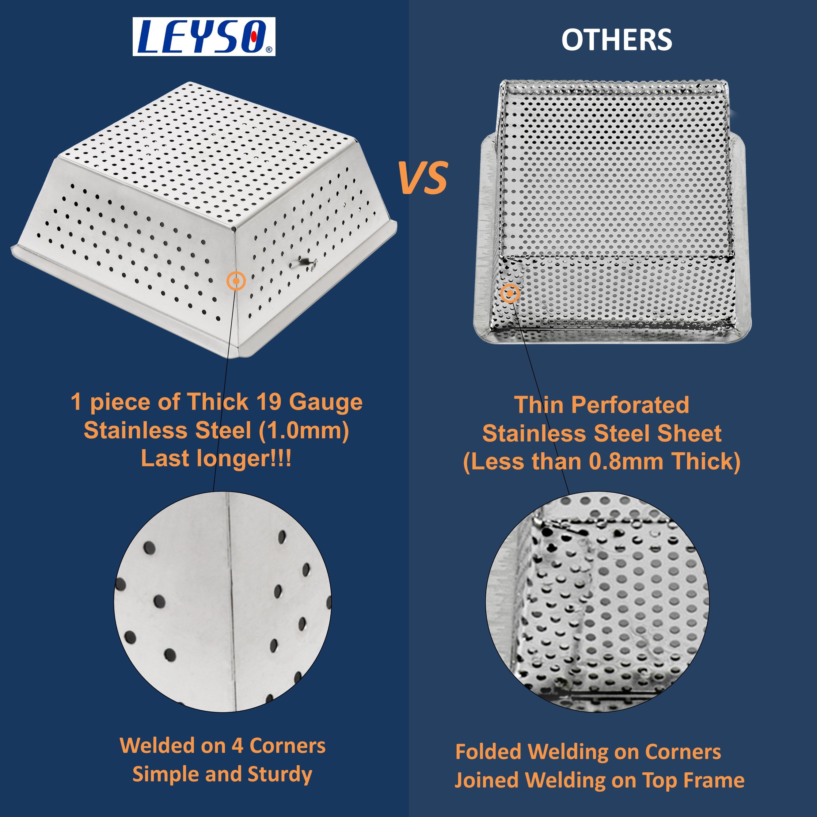 - [Durable] - Made from all heavy duty 19 gauge (1.0mm) Type 304 stainless steel, laser welded corners firm construction. This floor sink basket is 1 piece seamless stainless steel structure for longer lasting and more durable compared to others.