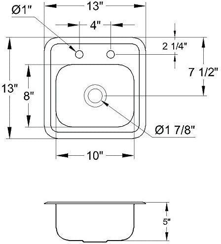 - [Dimensions] - 5” deep, 13” left to right and 13” front to back; Bowl Size: 8” x 10”, ETL Certified.